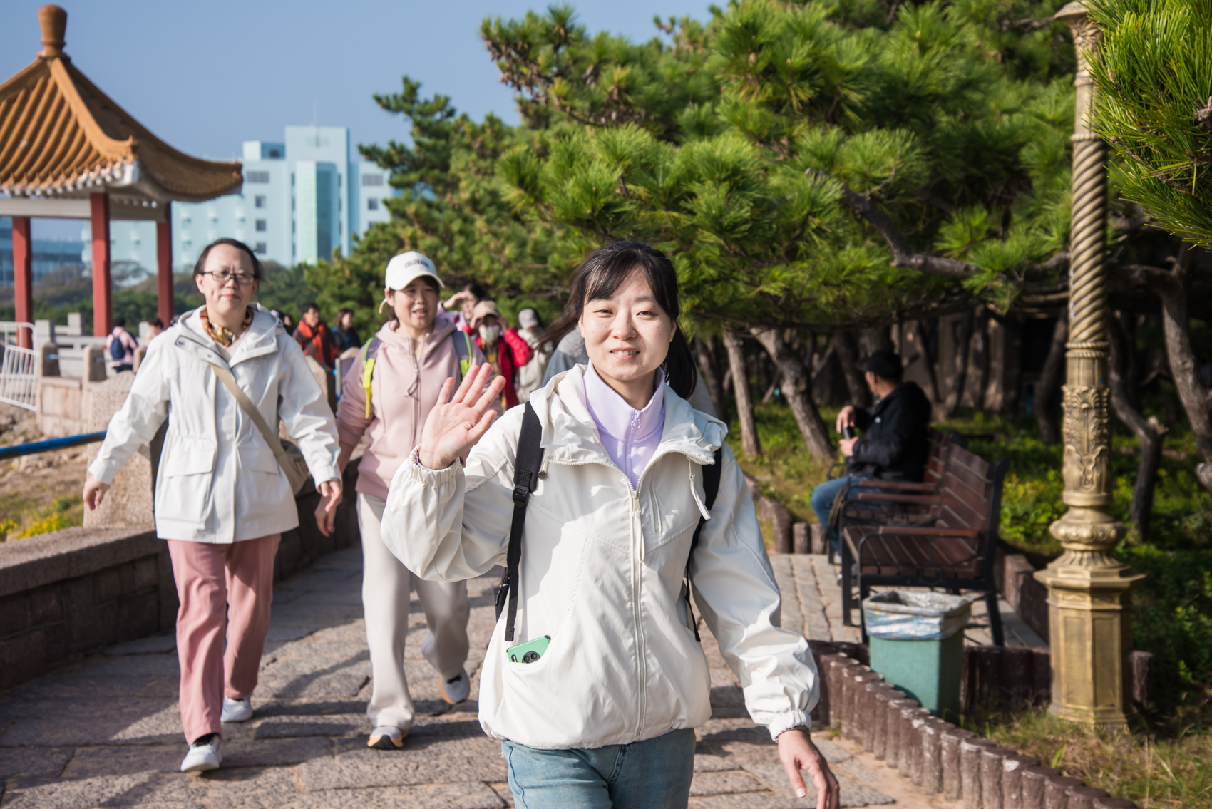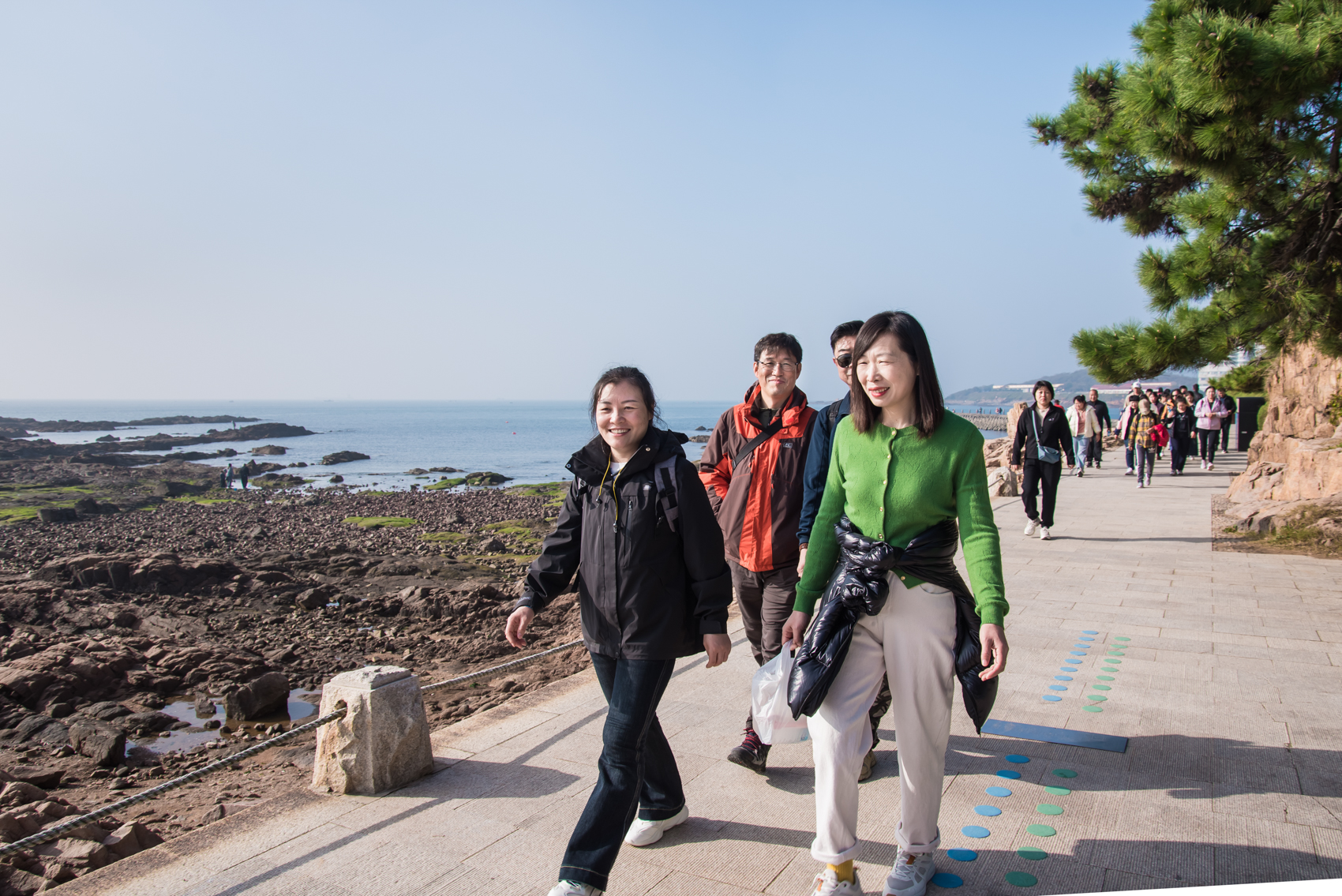 早上九點(diǎn),任職員們?cè)谇逅暮oL(fēng)中集結(jié),徒步活動(dòng)正式拉開帷幕。一路上,大家沿著蔚藍(lán)海岸前行,感受秋日陽(yáng)光與海風(fēng)交織的清新氣息。